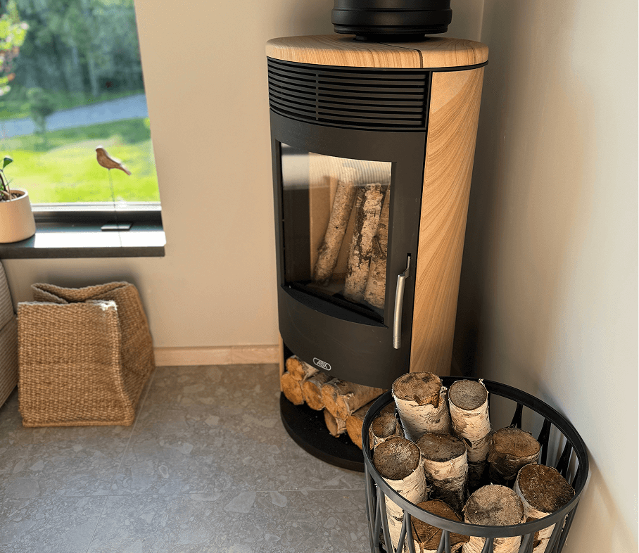 Viloje įrengtas grindinis šildymas, oro kondicionierius ir židinys su malkomis, kuris suteiks šilumos ir jaukumo.